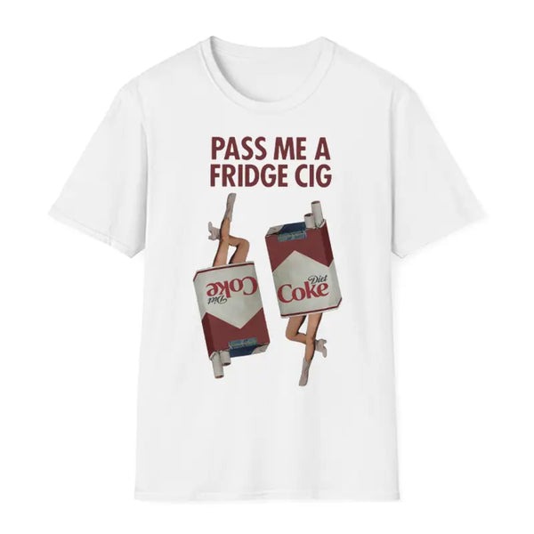 This playful tee features a parody of a cold "fridge cig" - aka a state of mind where vibes are deadpan, chilled, and slightly chaotic. Perfect for introverts with flair.