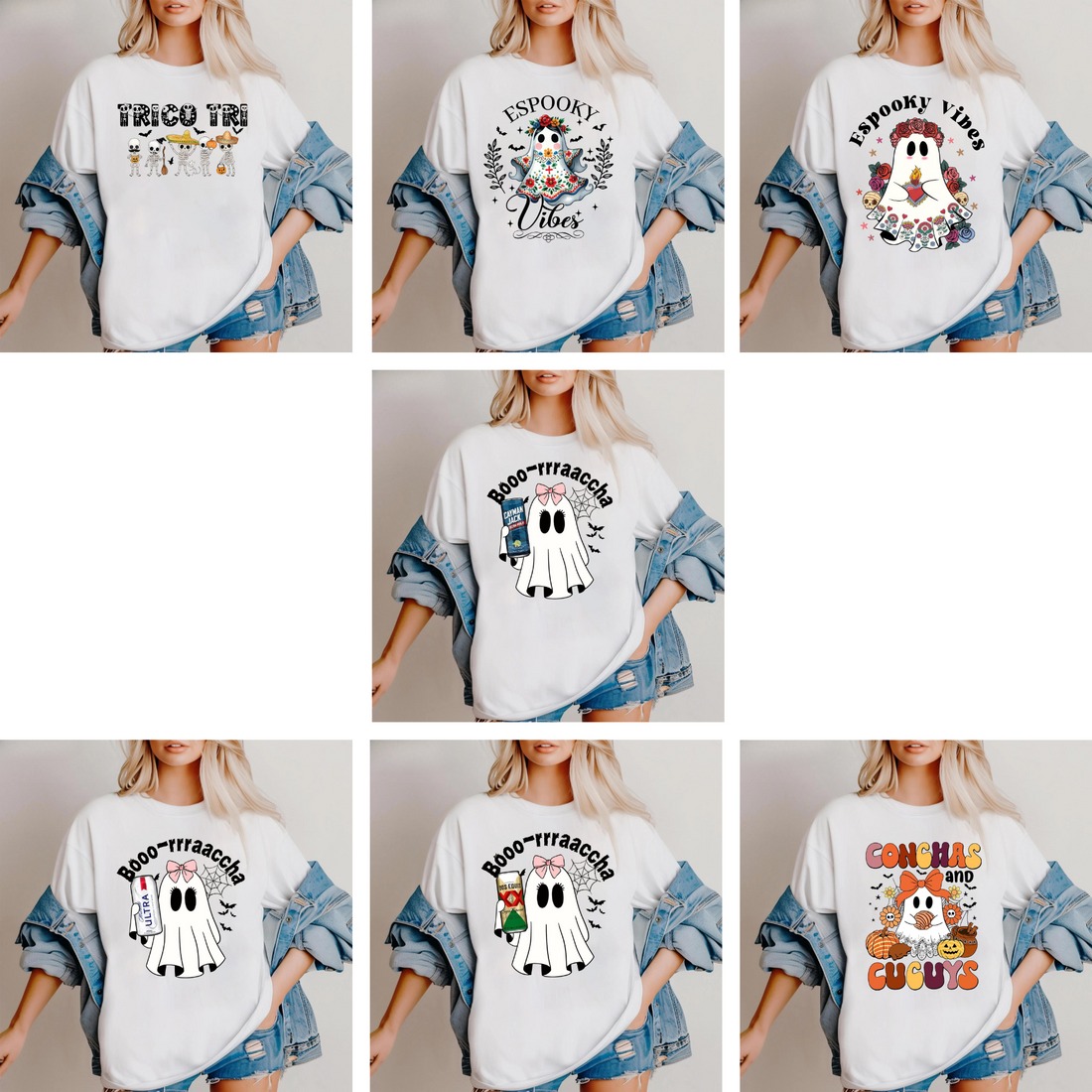7 Pattern choise Cute Ghost Drinking Mexican T-shirt