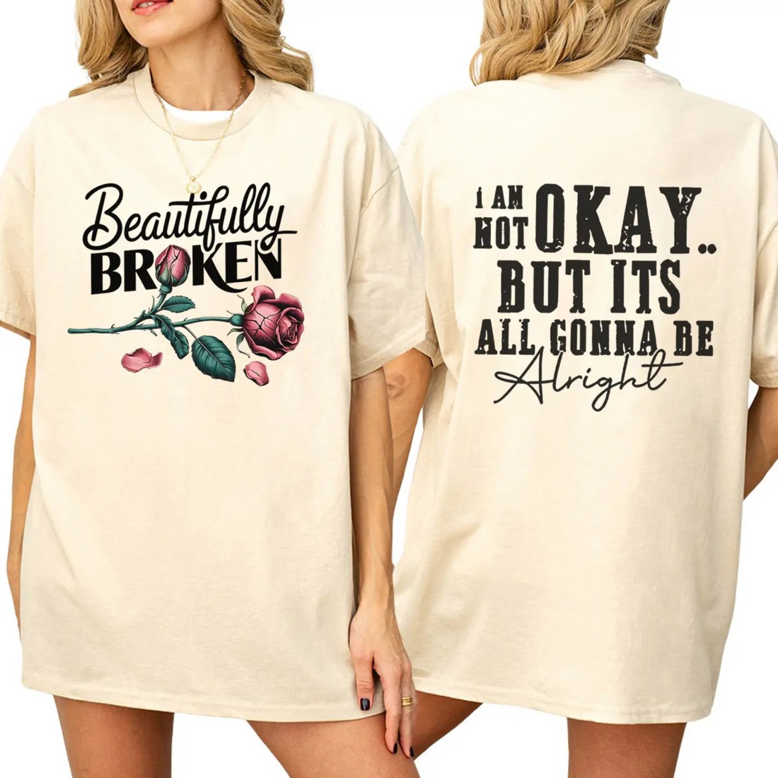 This tee wears your vulnerability like a badge of honor - reminding the world (and yourself) that it's okay not to be okay, and you're still beautiful through the cracks.