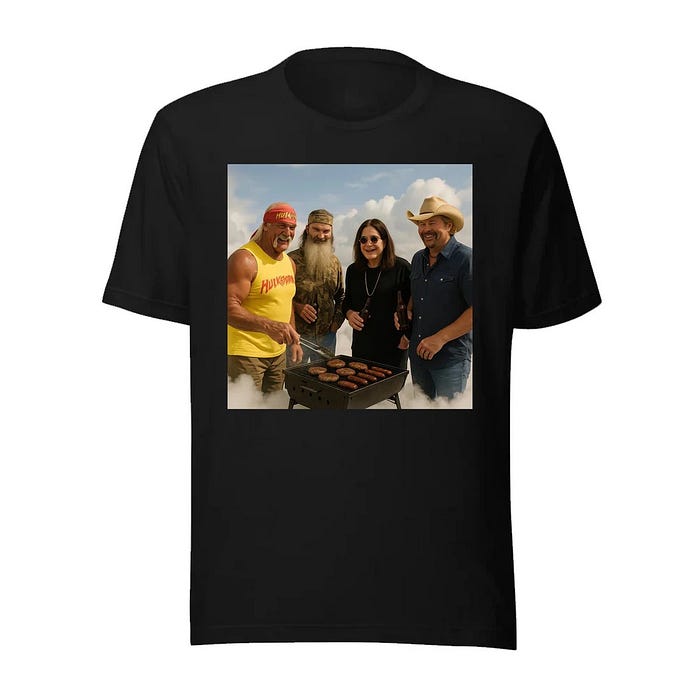 Classic rock vibes wrapped in a vintage-style print. The kind of shirt that looks like you’ve been rocking it since the ’80s — in the best way possible.