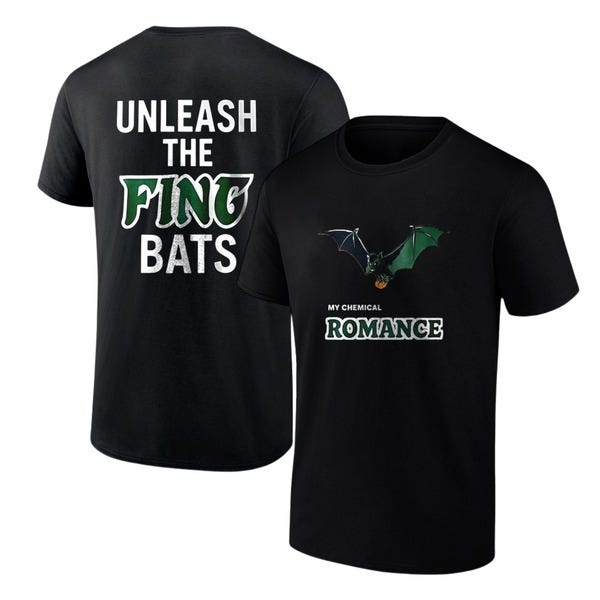 My Chemical Romance's "Unleash The F'ING Bats" shirt is chaotic, loud, and perfect for screaming along at concerts.
