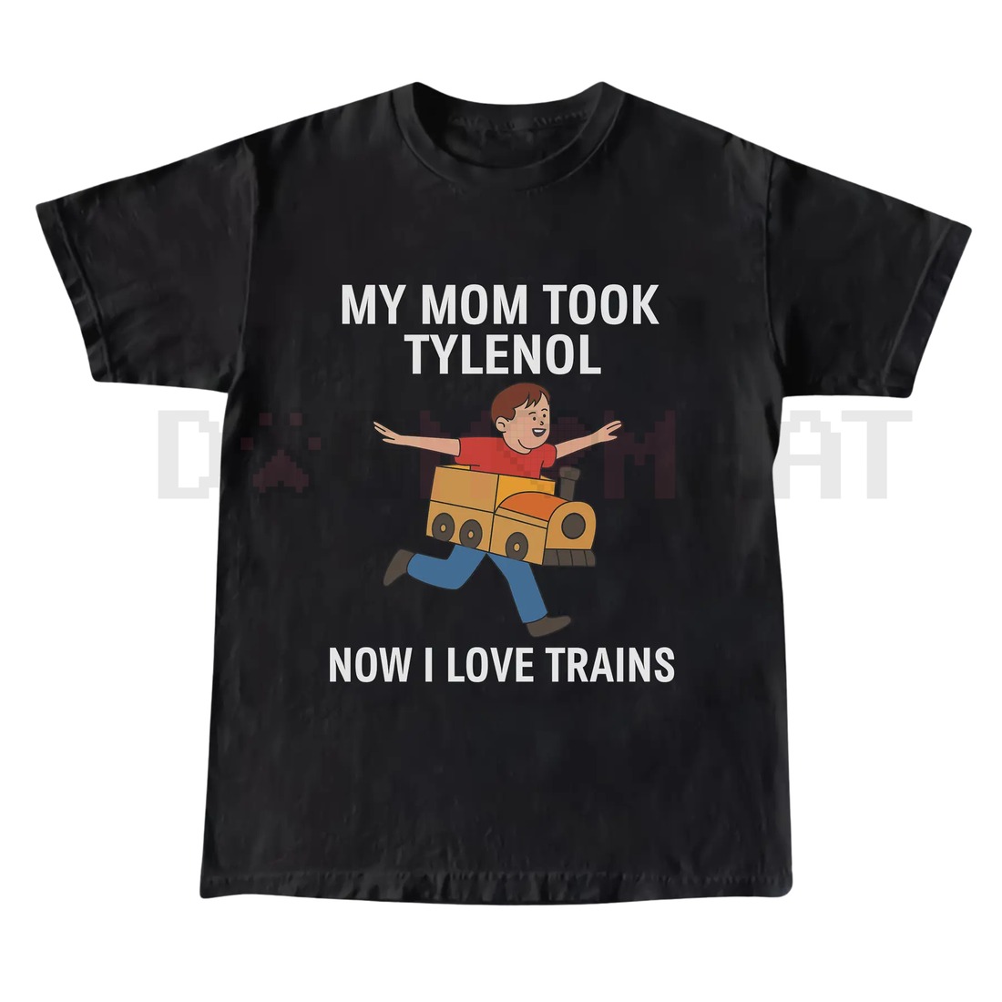 7️⃣ Mom Took Tylenol Love Trains Funny Meme Tee